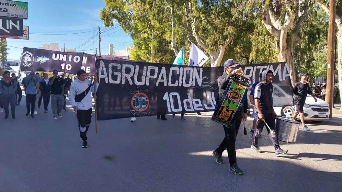 Conflicto Pesquero. Este lunes trabajadores marítimos volvieron a marchar por las calles de Puerto Madryn, en reclamo de la reactivación de la actividad pesquera.