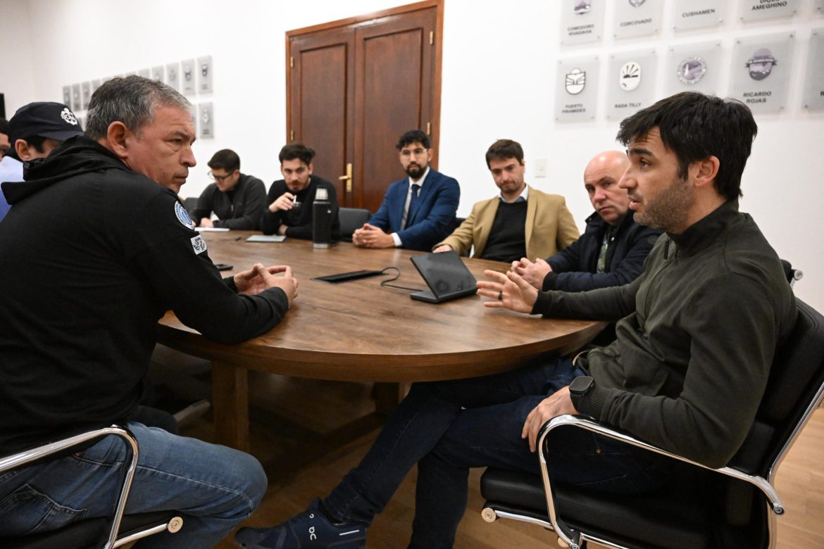 Participaron de la reunión, desarrollada en la Sala de Situación de la Casa de Gobierno, los secretarios de Pesca, Andrés Arbeletche, y de Trabajo, Nicolás Zárate; el intendente de Puerto Madryn, Gustavo Sastre; el secretario general del SOMU en la Región Patagonia, César Zapata, y el referente gremial Mario “Tito” Valenzuela.
