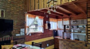 Las unidades habitacionales del complejo destacan por su calidez constructiva. Edificadas con materiales nobles como madera a medida, vigas a la vista y detalles en ladrillo, cada cabaña está equipada con chimenea y amplios ventanales que permiten apreciar el jardín y el entorno boscoso. La distribución de los espacios ha sido pensada para distintos tipos de grupos: