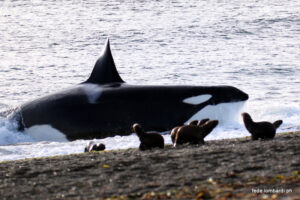 Las orcas de esta región son mundialmente conocidas por desarrollar el varamiento intencional. Durante esta maniobra, los animales se impulsan con un potente coletazo que los lanza deliberadamente fuera del agua en marea alta. El objetivo es capturar crías de lobos o elefantes marinos que se encuentran en la orilla.