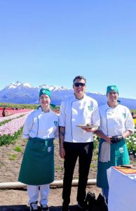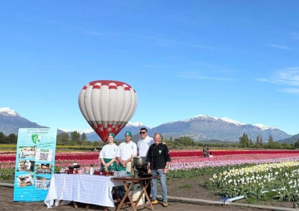El pasado domingo, el Campo de Tulipanes Patagonia de Trevelin se convirtió en un escenario culinario de excepción para celebrar el Día de la Madre. El chef Juan Pablo López, junto a un entusiasta equipo de estudiantes de 3º Año del Instituto Superior de Gastronomía de Trelew, llevó a cabo una memorable degustación con cocina en vivo.